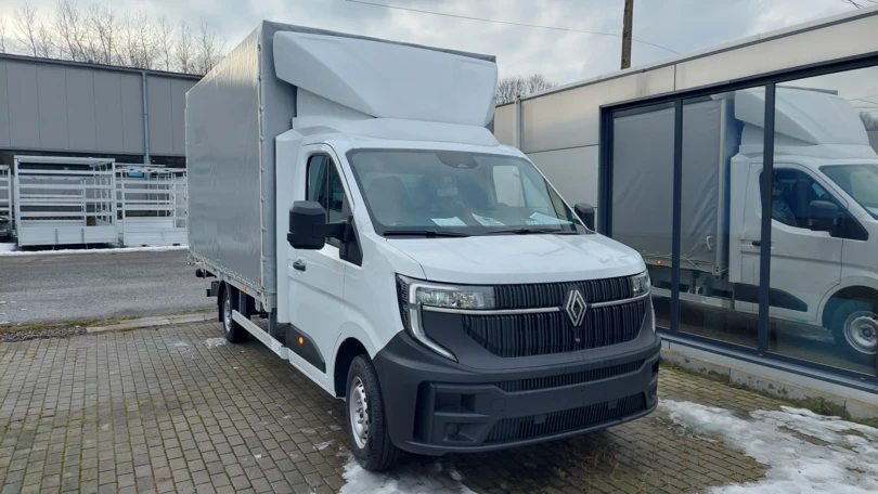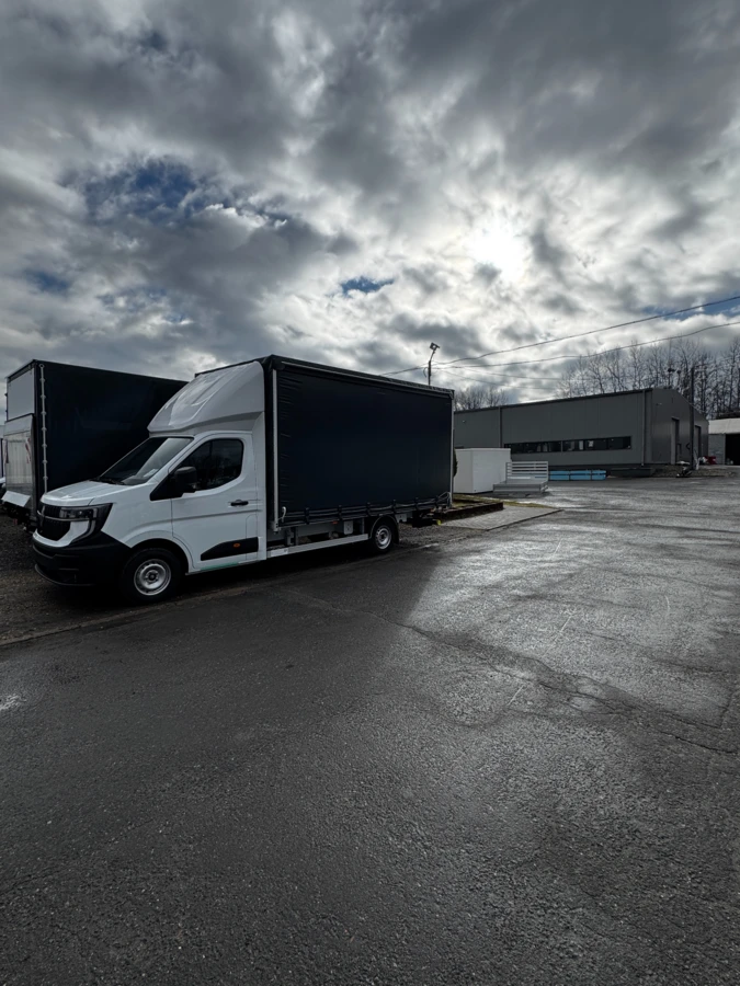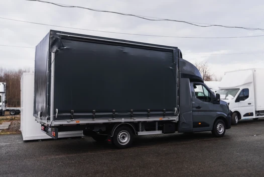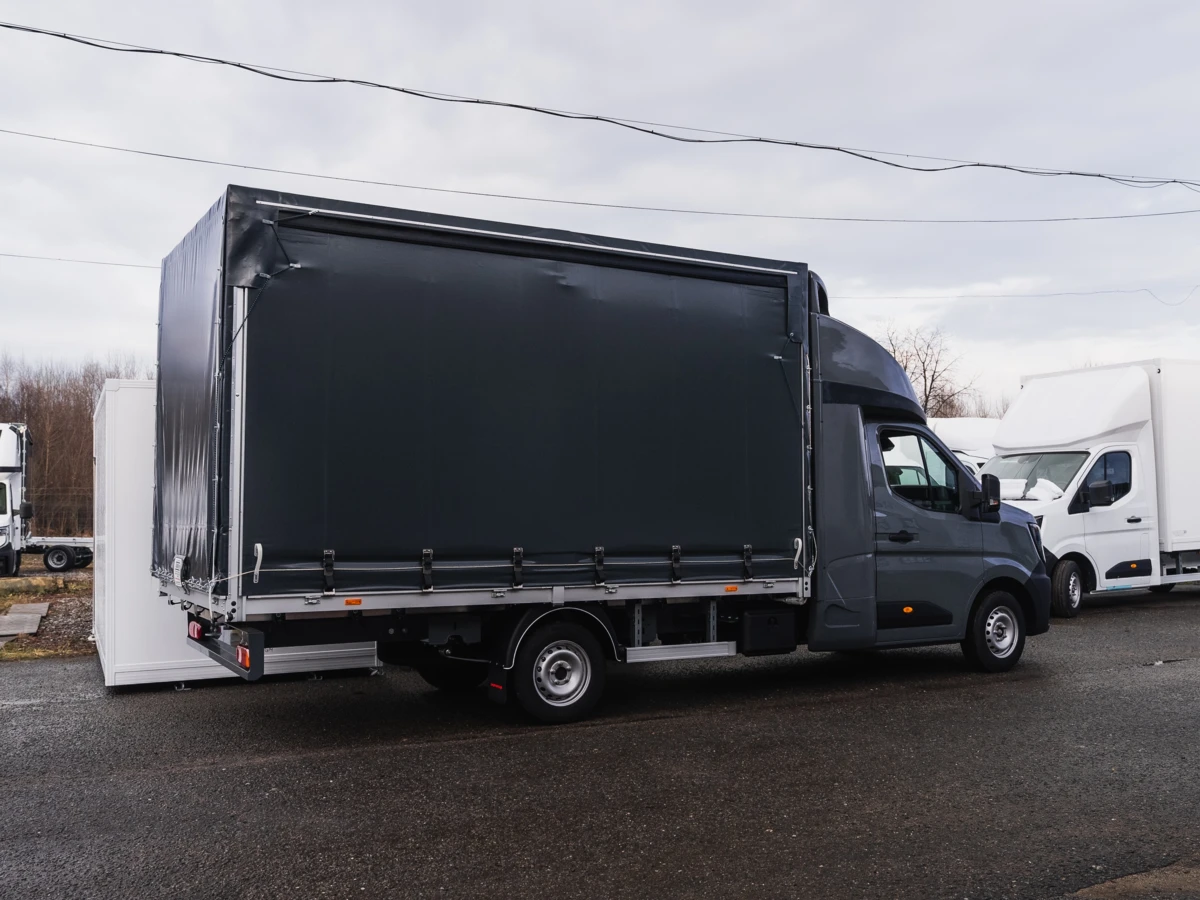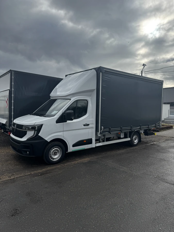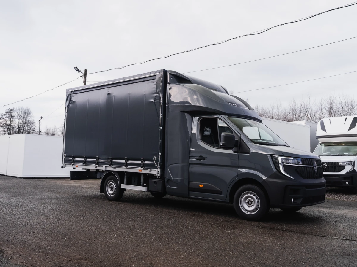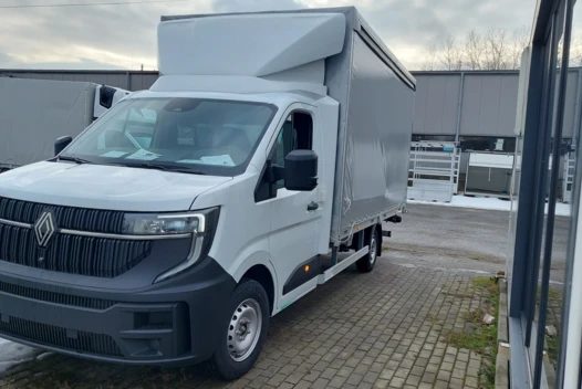 Представляємо пропозицію на новий заводський вантажний автомобіль Renault Master L3 з динамічним двигуном 2.0 dCi потужністю 170 к.с. Це комплексне рішення для міжнародних і внутрішніх перевезень, що поєднує великий вантажний простір з функціональністю підйомника та бортовими шторками.